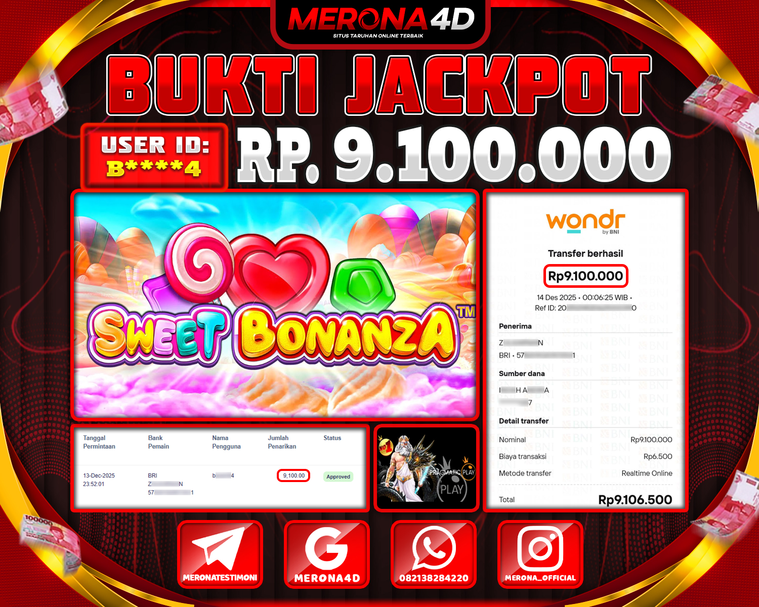 Selamat Kepada Member MERONA4D B****4 Telah Jackpot Di SWEET BONANZA