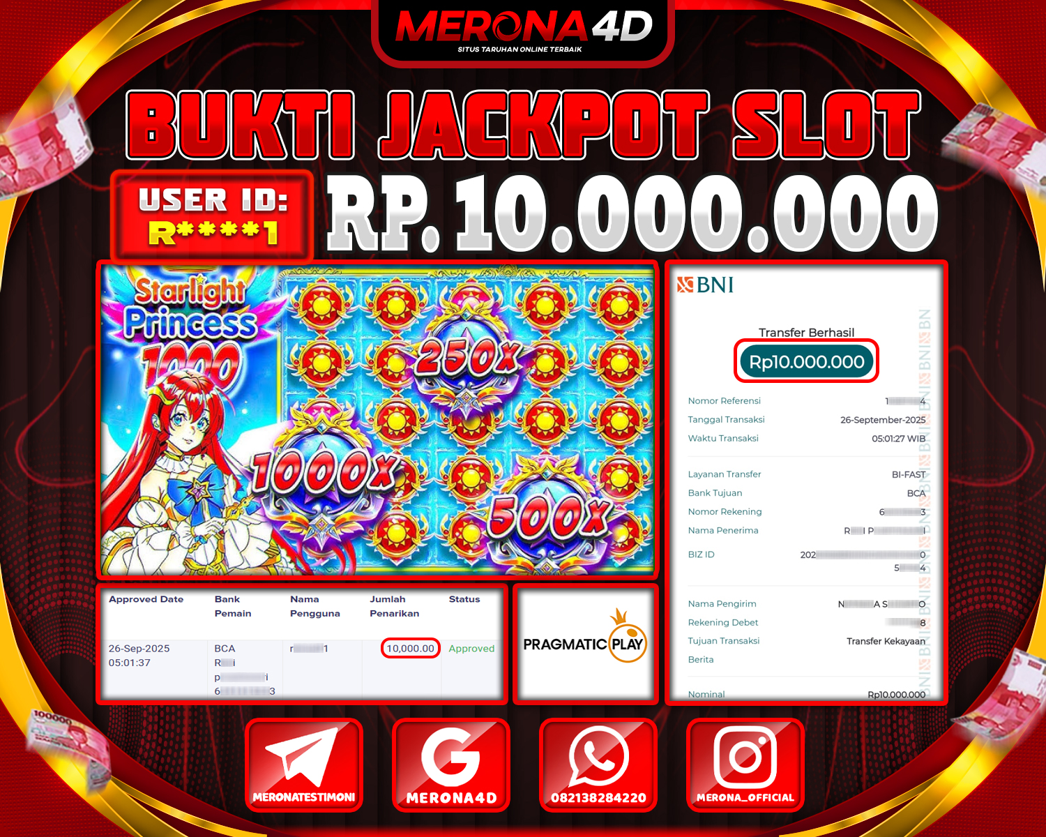 Selamat Kepada Member MERONA4D R****1 Telah Jackpot Di STARLIGHT PRINCESS 1000