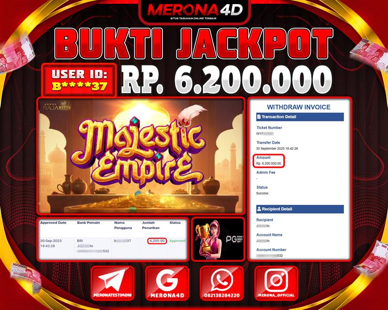 Selamat Kepada Member MERONA4D B*****37 Telah Jackpot Di MAJESTIC EMPIRE