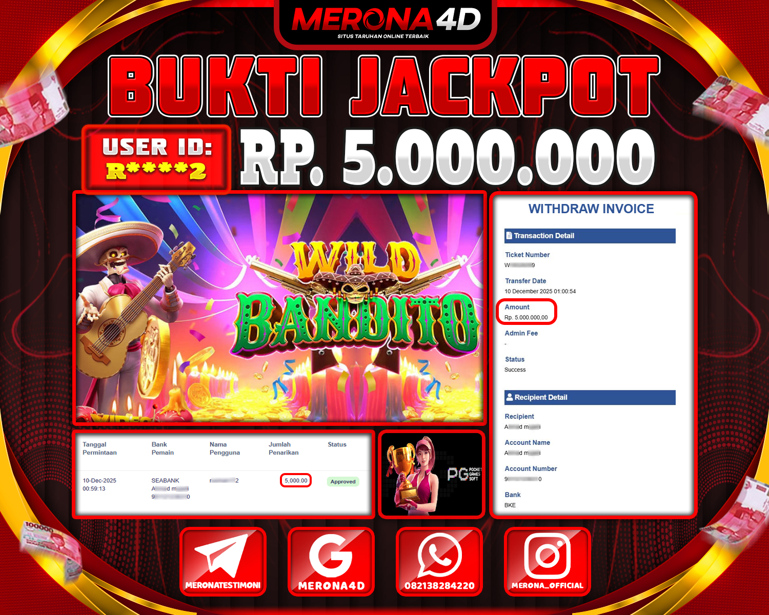 Selamat Kepada Member MERONA4D R****2 Telah Jackpot Di WILD BANDITO