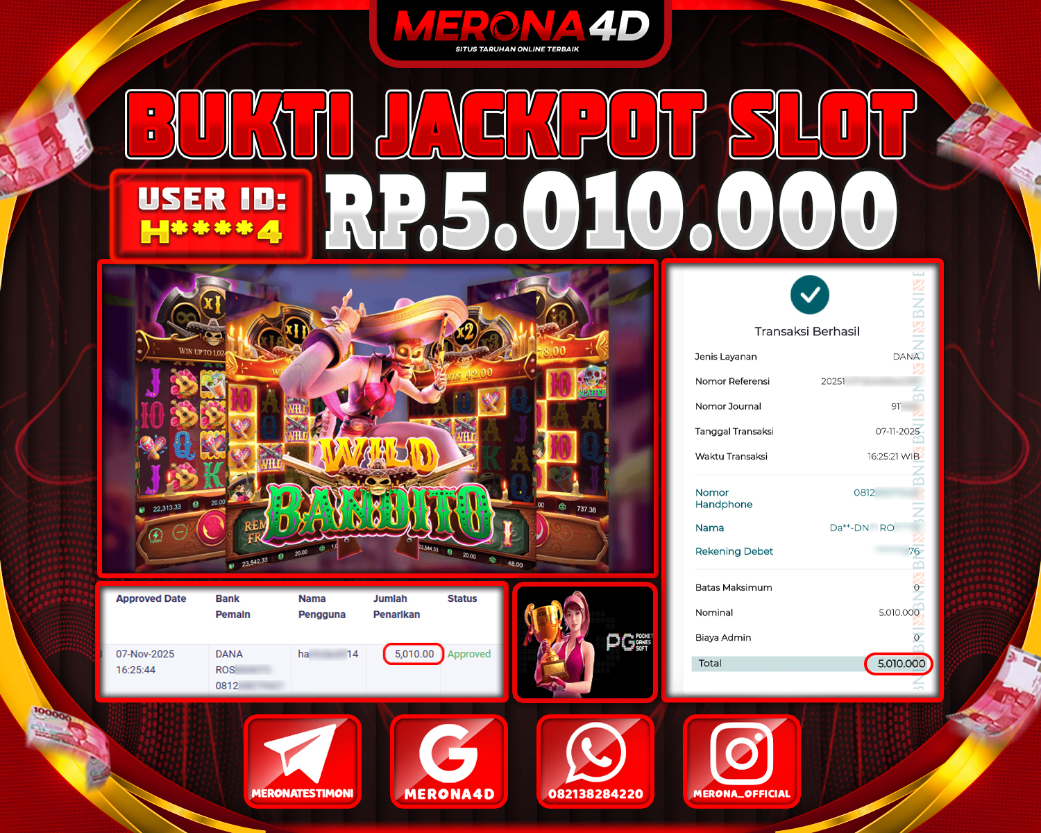 Selamat Kepada Member MERONA4D P****A Telah Jackpot Di WILD BANDITO