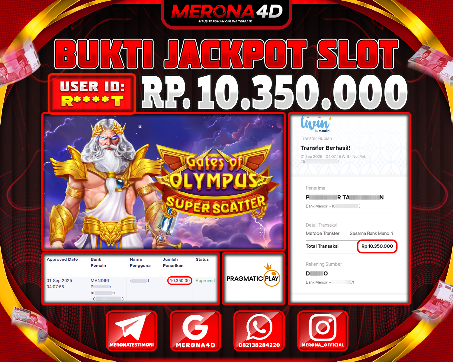 Selamat Kepada Member MERONA4D R****T Telah Jackpot Di GATES OF OLYMPUS SUPER SCATTER