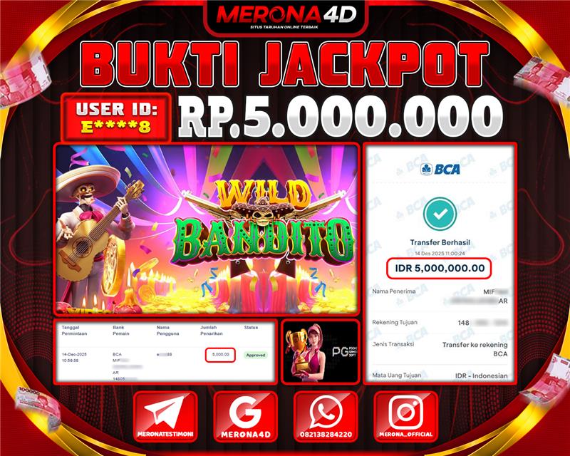 Selamat Kepada Member MERONA4D E******8 Telah Jackpot Di WILD BANDITO