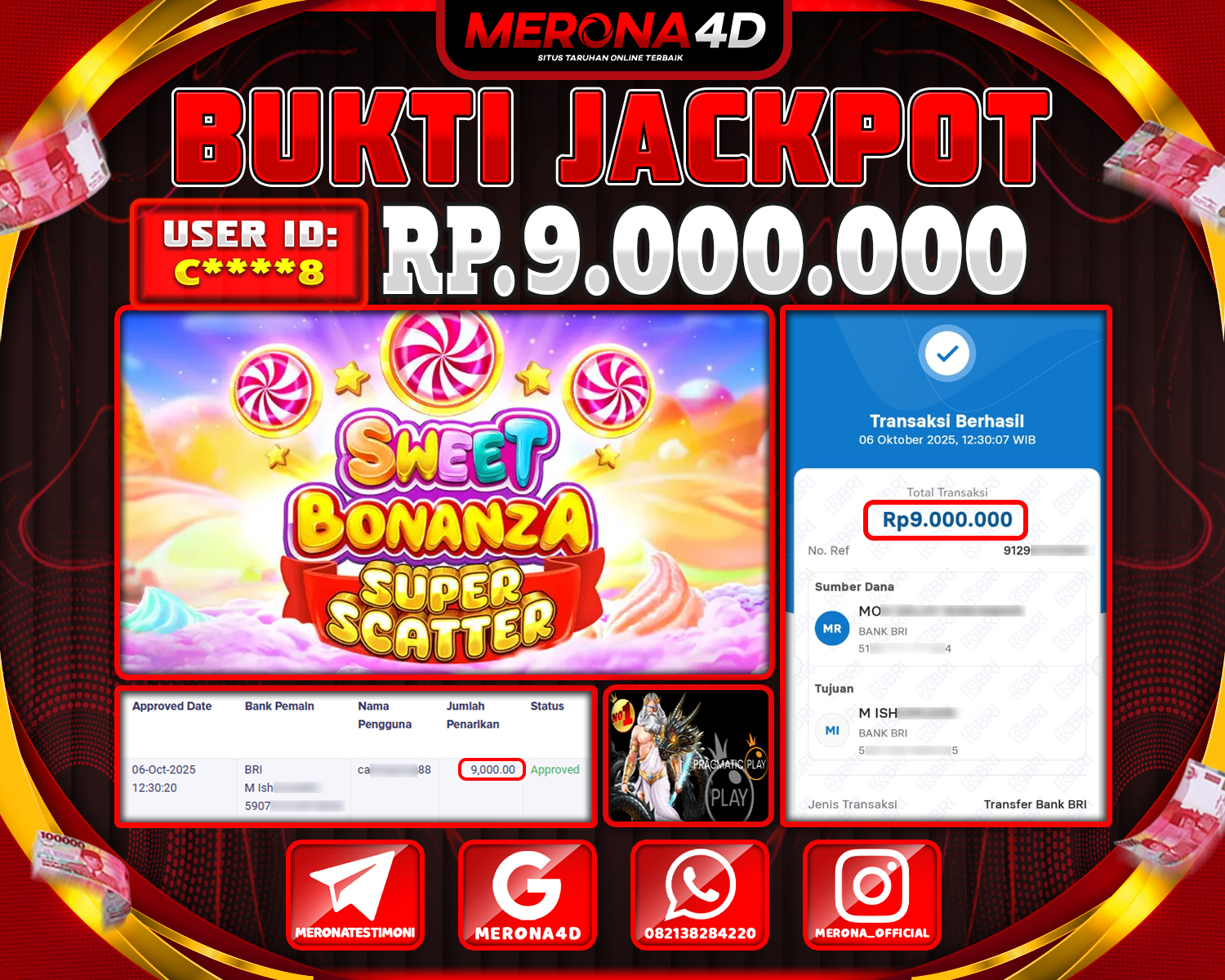 Selamat Kepada Member MERONA4D C*****8 Telah Jackpot Di SWEET BONANZA SUPER SCATTER