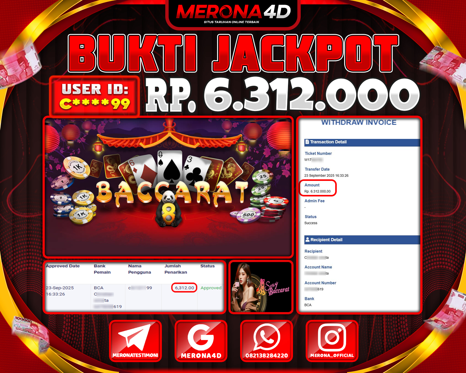 Selamat Kepada Member MERONA4D C*****9 Telah Jackpot Di BACARRAT