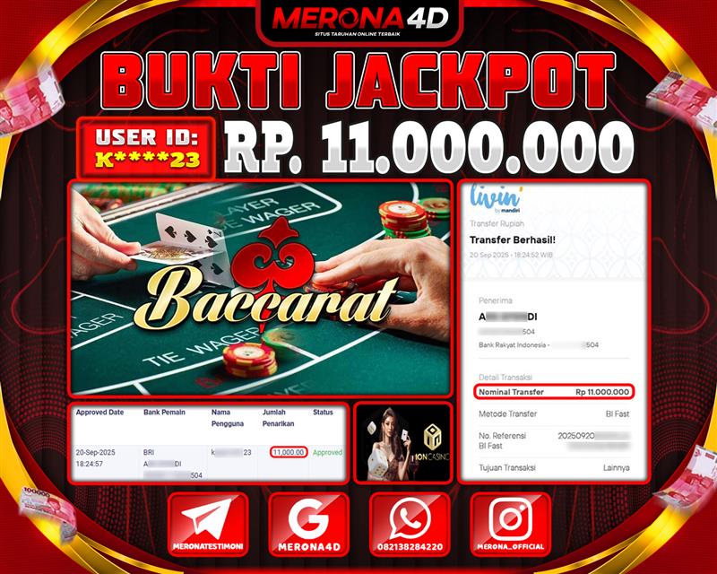 Selamat Kepada Member MERONA4D K*****3 Telah Jackpot Di BACCARAT