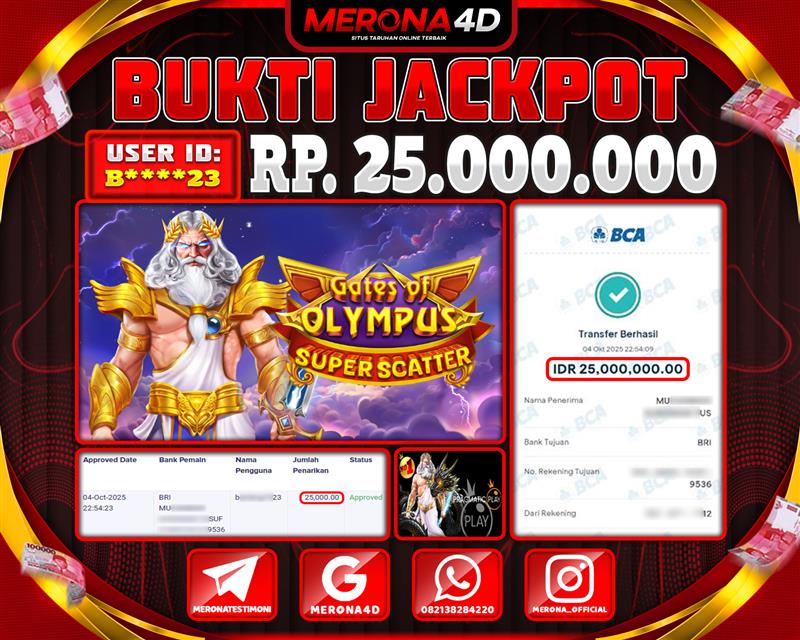 Selamat Kepada Member MERONA4D B*****23 Telah Jackpot Di GATES OF OLYMPUS SUPER SCATTER