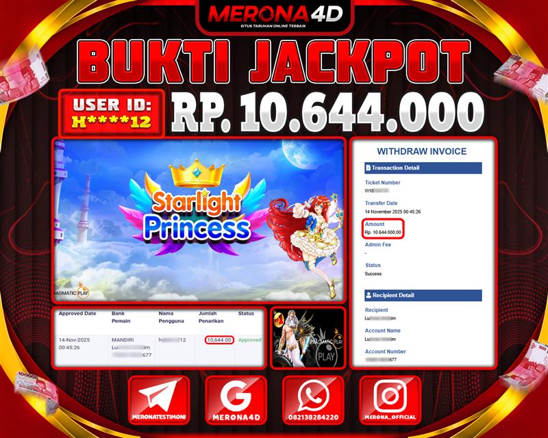 Selamat Kepada Member MERONA4D H*****12 Telah Jackpot Di STARLIGHT PRINCESS