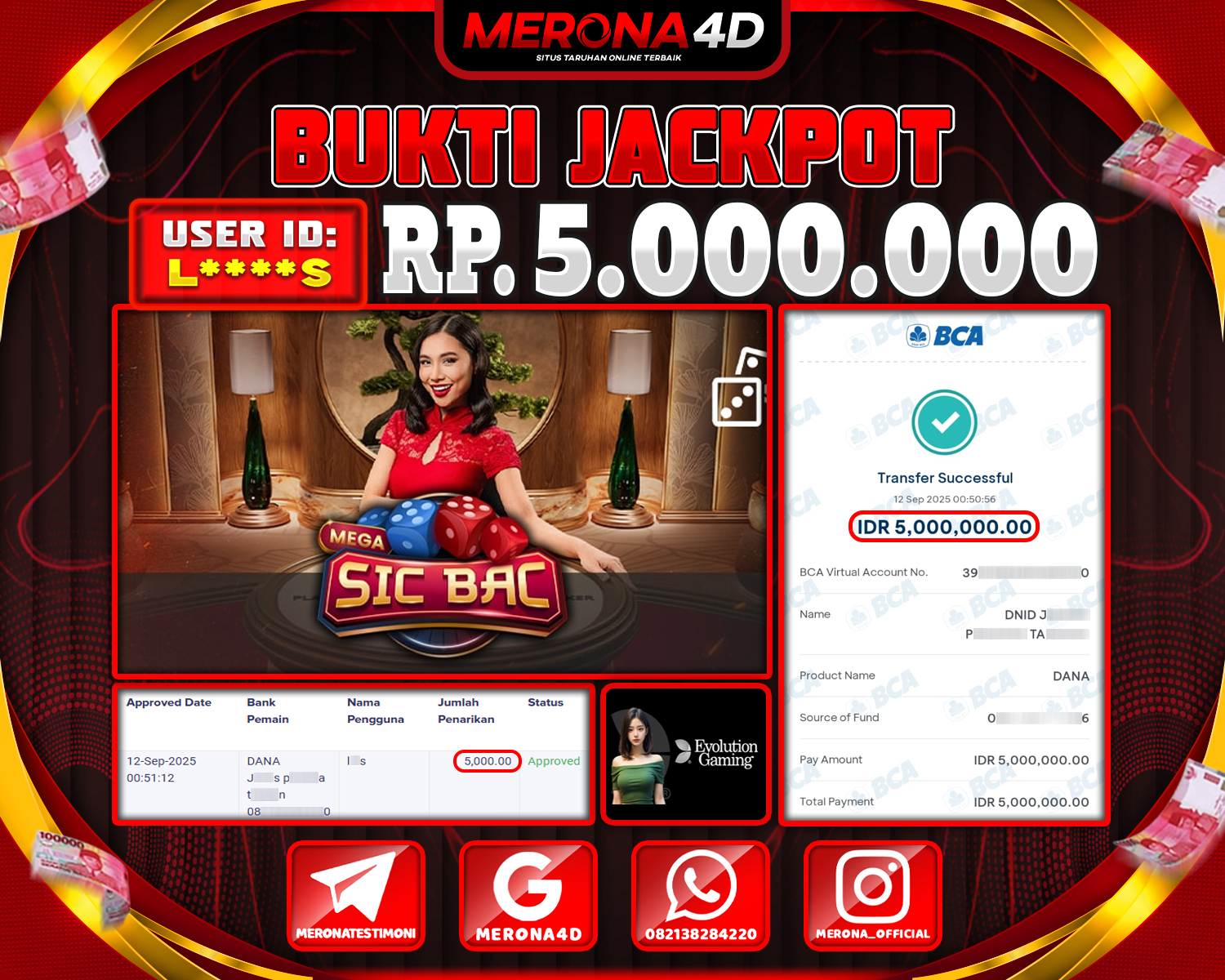 Selamat Kepada Member MERONA4D L****S Telah Jackpot Di SUPER SICBO