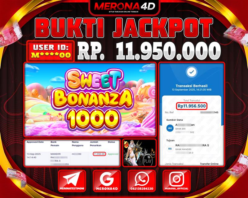 Selamat Kepada Member MERONA4D M*****0 Telah Jackpot Di SWEET BONANZA 1000