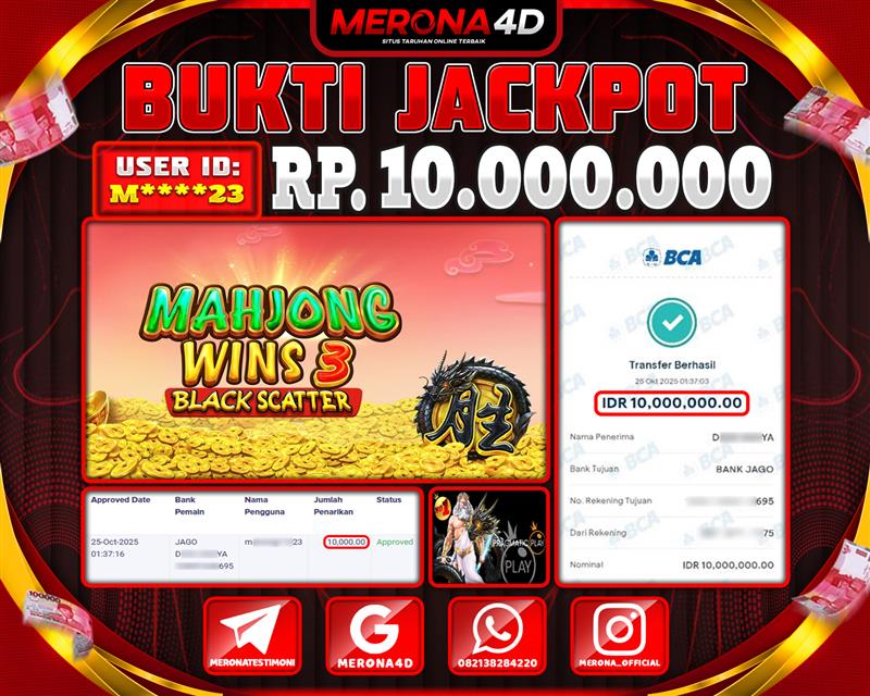 Selamat Kepada Member MERONA4D M*****33 Telah Jackpot Di MAHJONG WINS 3 BLACK SCATTER