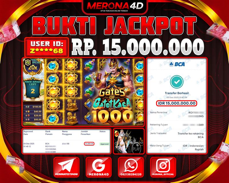 Selamat Kepada Member MERONA4D Z*****68 Telah Jackpot Di GATES OF GATOT KACA 1000