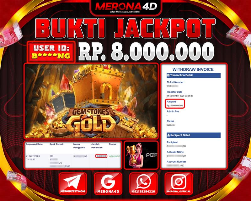 Selamat Kepada Member MERONA4D B*****NG Telah Jackpot Di GEMSTONES GOLD