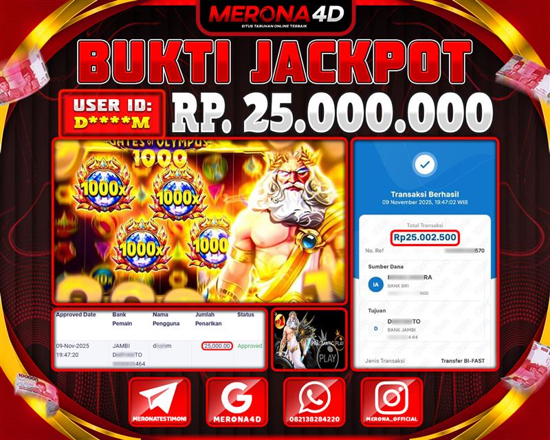 Selamat Kepada Member MERONA4D M******00 Telah Jackpot Di GATES OF OLYMPUS 1000