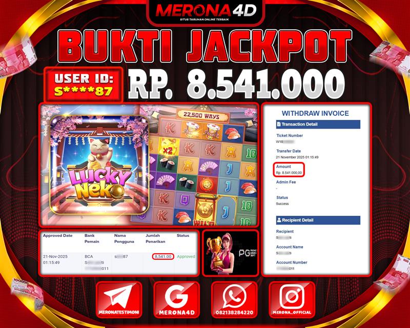 Selamat Kepada Member MERONA4D S*****87 Telah Jackpot Di LUCKY NEKO