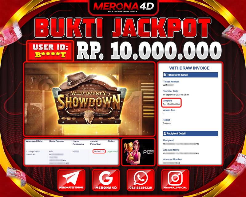 Selamat Kepada Member MERONA4D M****1 Telah Jackpot Di WILD BOUNTY SHOWDOWN