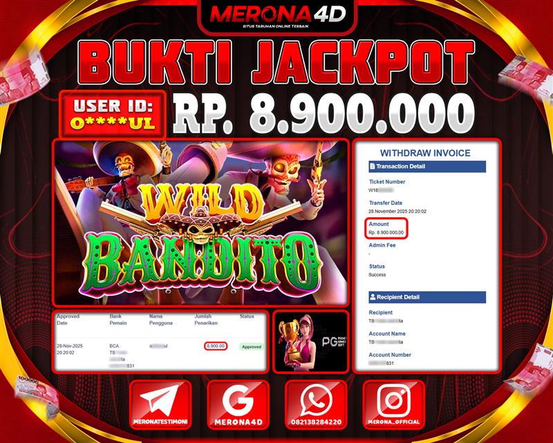 Selamat Kepada Member MERONA4D O*****UL Telah Jackpot Di WILD BANDITO