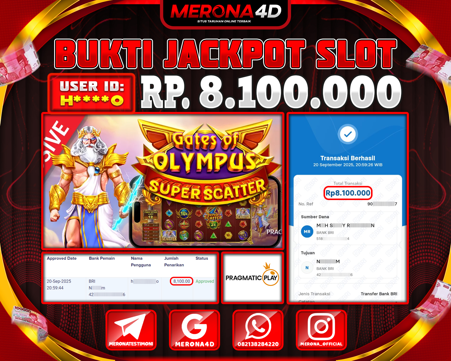 Selamat Kepada Member MERONA4D H****O Telah Jackpot Di GATES OF OLYMPUS SUPER SCATTER