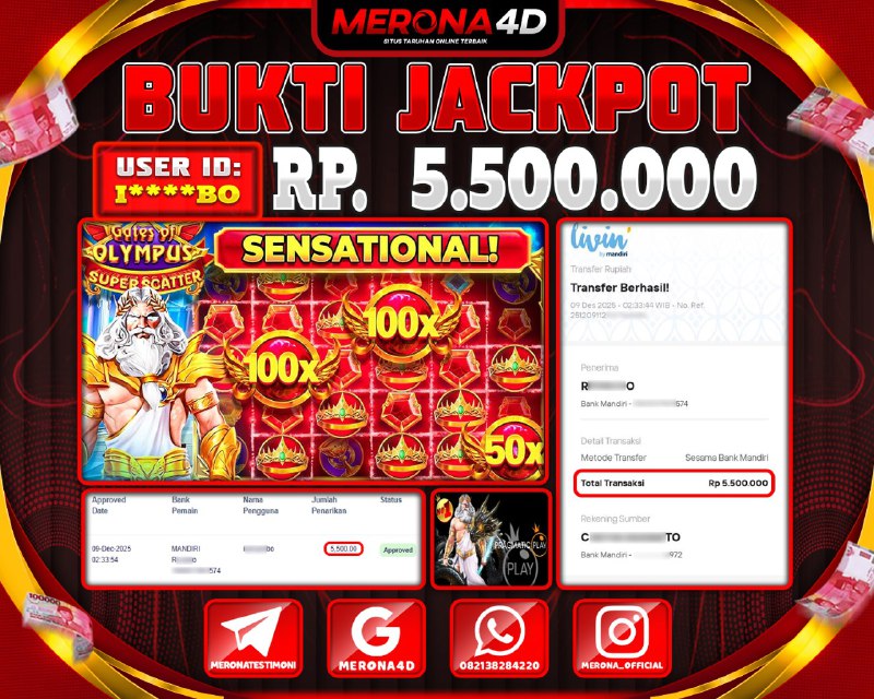 Selamat Kepada Member MERONA4D I*****BO Telah Jackpot Di GATES OF OLYMPUS SUPER SCATTER