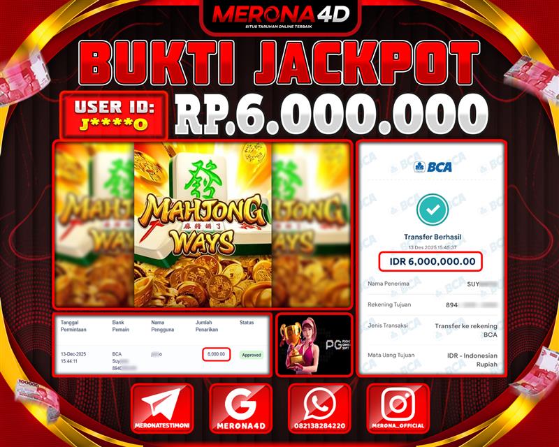 Selamat Kepada Member MERONA4D J*****O Telah Jackpot Di MAHJONG WAYS 2