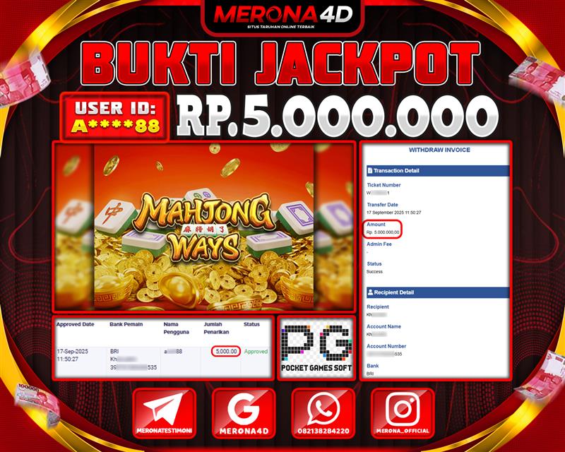 Selamat Kepada Member MERONA4D A*****8 Telah Jackpot Di MAHJONG WAYS 1